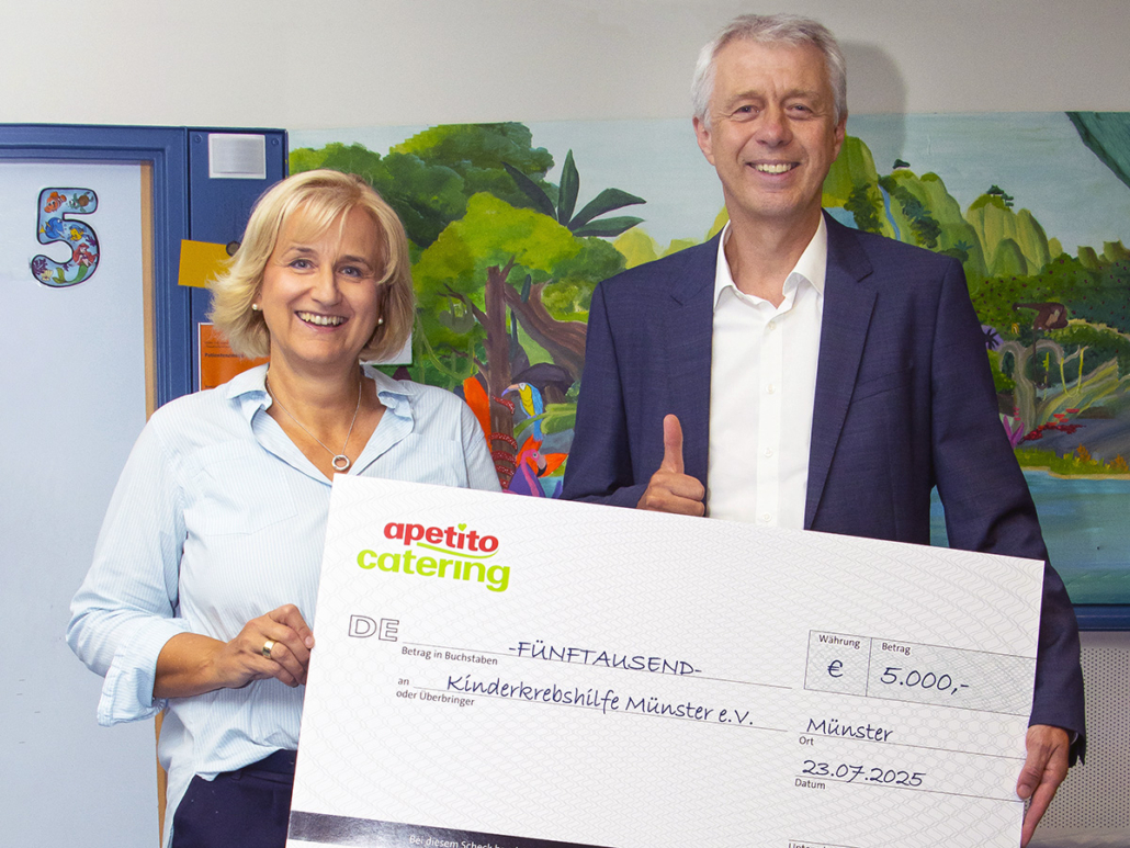 Das Unternehmen apetito catering aus Rheine hat Mitte Juli 5.000 € an die Kinderkrebshilfe Münster gespendet. Die beachtliche Summe ist im Zusammenhang mit einer Kunden- und Interessentenbefragung im Rahmen des neuen Strategieprozesses von apetito catering entstanden.