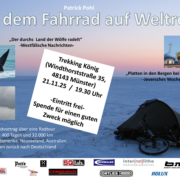 Über seine abenteuerliche Radreise hielt er Mitte November einen spannenden Vortrag im Geschäft „Trekking König“ in der Innenstadt in Münster. Statt eines Eintrittsgeldes bat Patrick Pohl die Besucherinnen und Besucher um eine Spende für die Kinderkrebshilfe Münster. Vor dem Vortrag berichtete Norbert Gebker, Vorstandsmitglied der Kinderkrebshilfe anschaulich, welche wichtigen Aufgaben der Verein für die Kinderonkologie in Münster übernimmt. Die rund 60 Zuhörer:innen spendeten insgesamt 428,30 €.