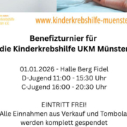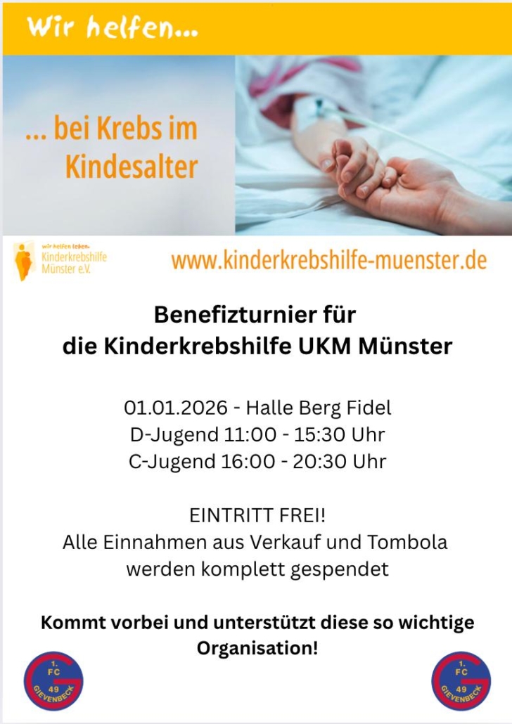 Am 1. Januar 2026 findet in der Sport- und Veranstaltungshalle Berg Fidel findet ein Fußballturnier statt, bei dem jeweils acht Mannschaften in den Altersklassen U13 und U15 gegeneinander antreten. Das Neujahrsturnier wird vom 1. FC Gievenbeck organisiert. Der Erlös aus der Tombola und aus dem Verkauf von Speisen und Getränken kommt der Kinderkrebshilfe Münster zugute.