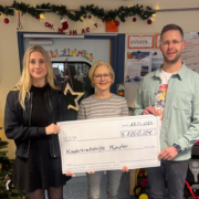 Mitte Dezember 2025 machten sich Isabell Egelkamp und André Rählmann von der Sanitär- und Heizungsfirma Andreas Egelkamp GmbH&Co.KG aus Recke auf den Weg nach Münster zum Uniklinikum Münster (UKM). Im Vorfeld hatte die Firma eine kostenfreie Informationsveranstaltung über Wärmepumpen angeboten und dafür um eine freiwillige Spende für die Kinderkrebshilfe Münster gebeten.