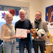 In der ersten Februarwoche 2026 besuchten die Malermeister Konstantin Scholz-Sadebeck und Martin Pedowski die kinderonkologische Station des Uniklinikums Münster. Anette Blomberg, stellvertretende Vorsitzende der Kinderkrebshilfe Münster, begrüßte die beiden Mitglieder des Malermeistervereins. Sichtlich erfreut nahm sie den symbolischen Spendenscheck entgegen und berichtete, was die Kinderkrebshilfe auf der Station mit Spendengeldern finanziert.