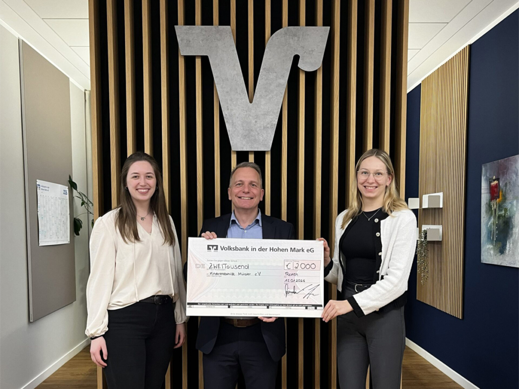 Mit einer selbst entwickelten Spendenaktion haben die Auszubildenden der Volksbank in der Hohen Mark ein deutliches Zeichen für soziales Engagement gesetzt – und am Ende 2.000 € an die Kinderkrebshilfe Münster e. V. übergeben.