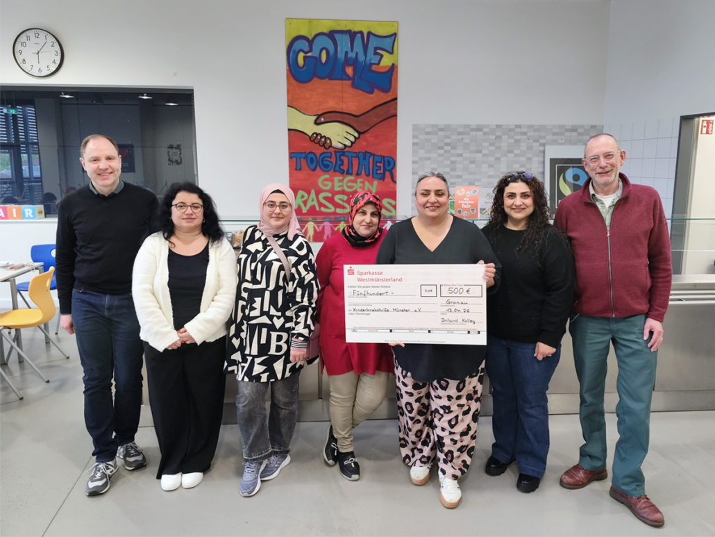 Mit dem Verkauf der Speisen sammelte die Gruppe Spenden für die Kinderkrebshilfe Münster. Durch die Unterstützung des Förderkreises wurde eine Spendensumme von insgesamt 500 € erreicht. Bei einem gemeinsamen Essen am 13. April 2026 überreichten die engagierten Frauen die Spende an Norbert Gebker, Vorstandsmitglied der Kinderkrebshilfe. Er berichtete über die verschiedenen Projekte, die die Kinderkrebshilfe unterstützt und bedankte sich herzlich für das gute Essen und das Engagement.